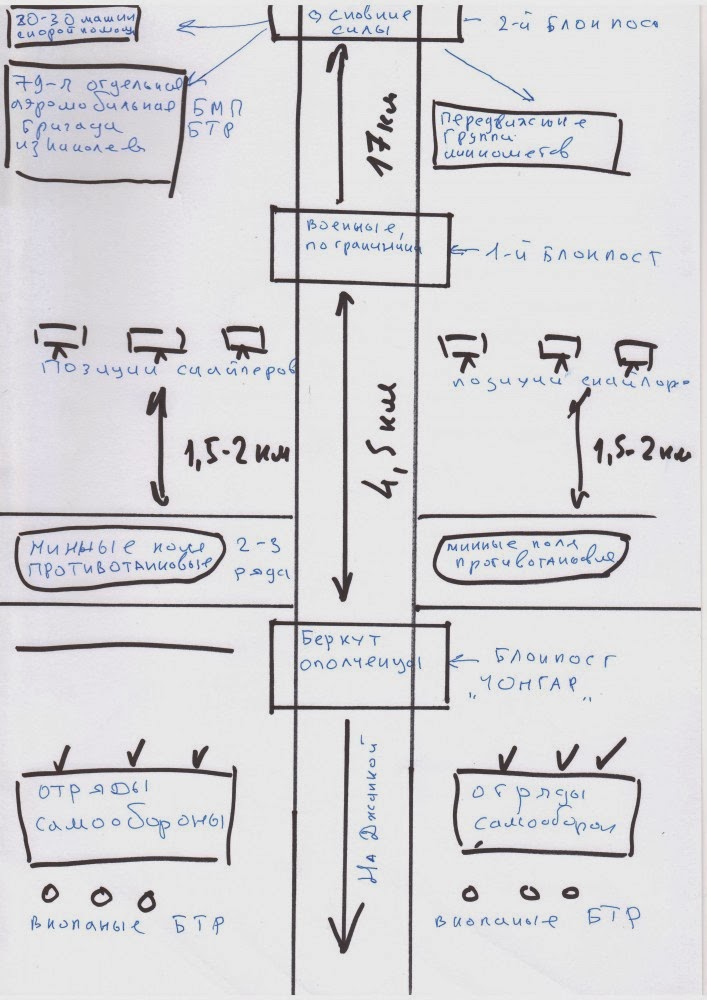 1. На самом блок-посту стоят "Беркут" и ополченцы. Прикрывают дорогу на Джанкой и выполняют контрольно-пропускные функции.
